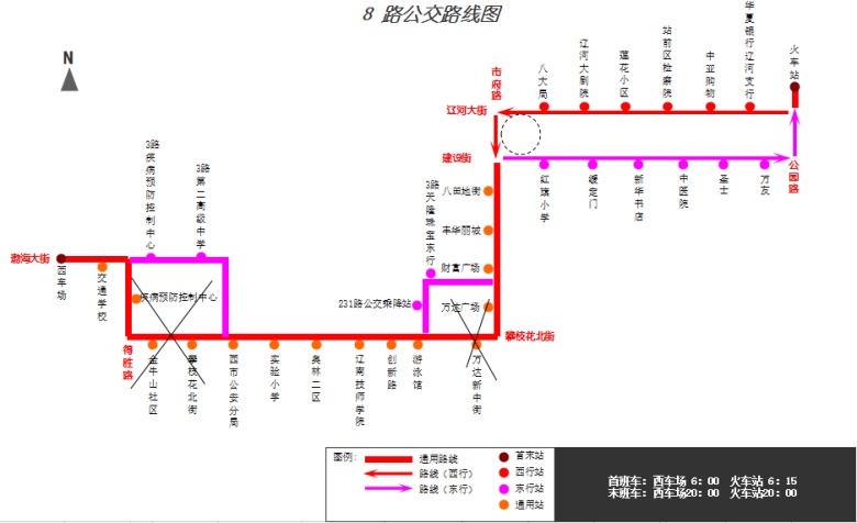 1.走向調(diào)整:“西車場”—渤海大街—平安路—中心街—“西市公安分局”—原線—“游泳館”—體育館路—渤海大街—市府路—“財富廣場”—原線—“火車站”。